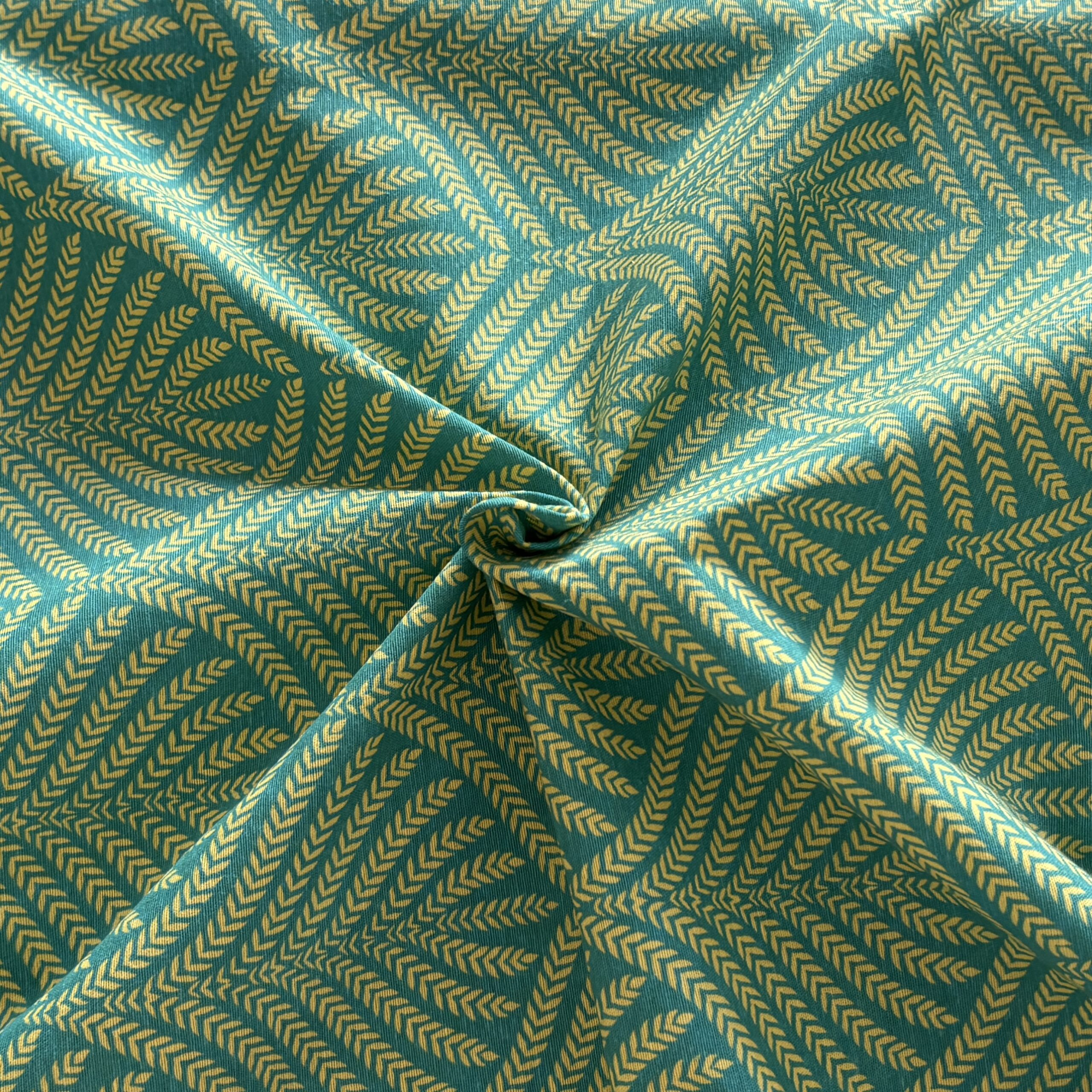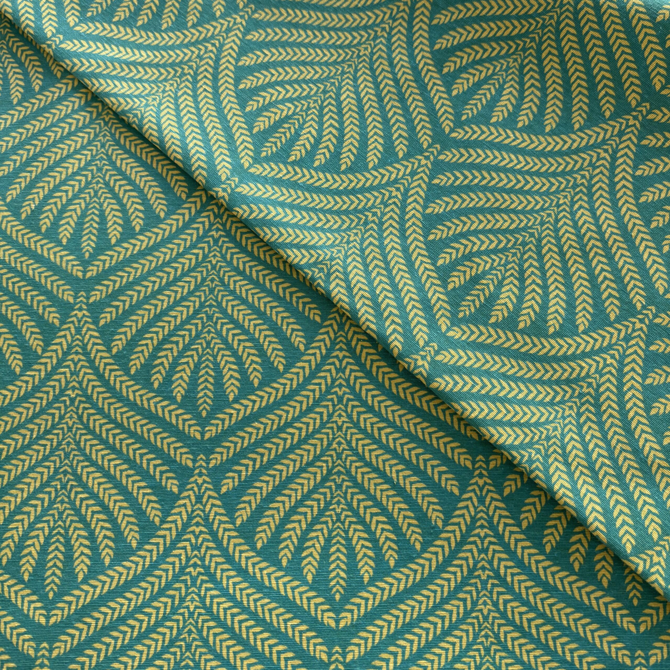 Coupon Polycoton Art Déco Bleu Canard et jaune 1,40x3m