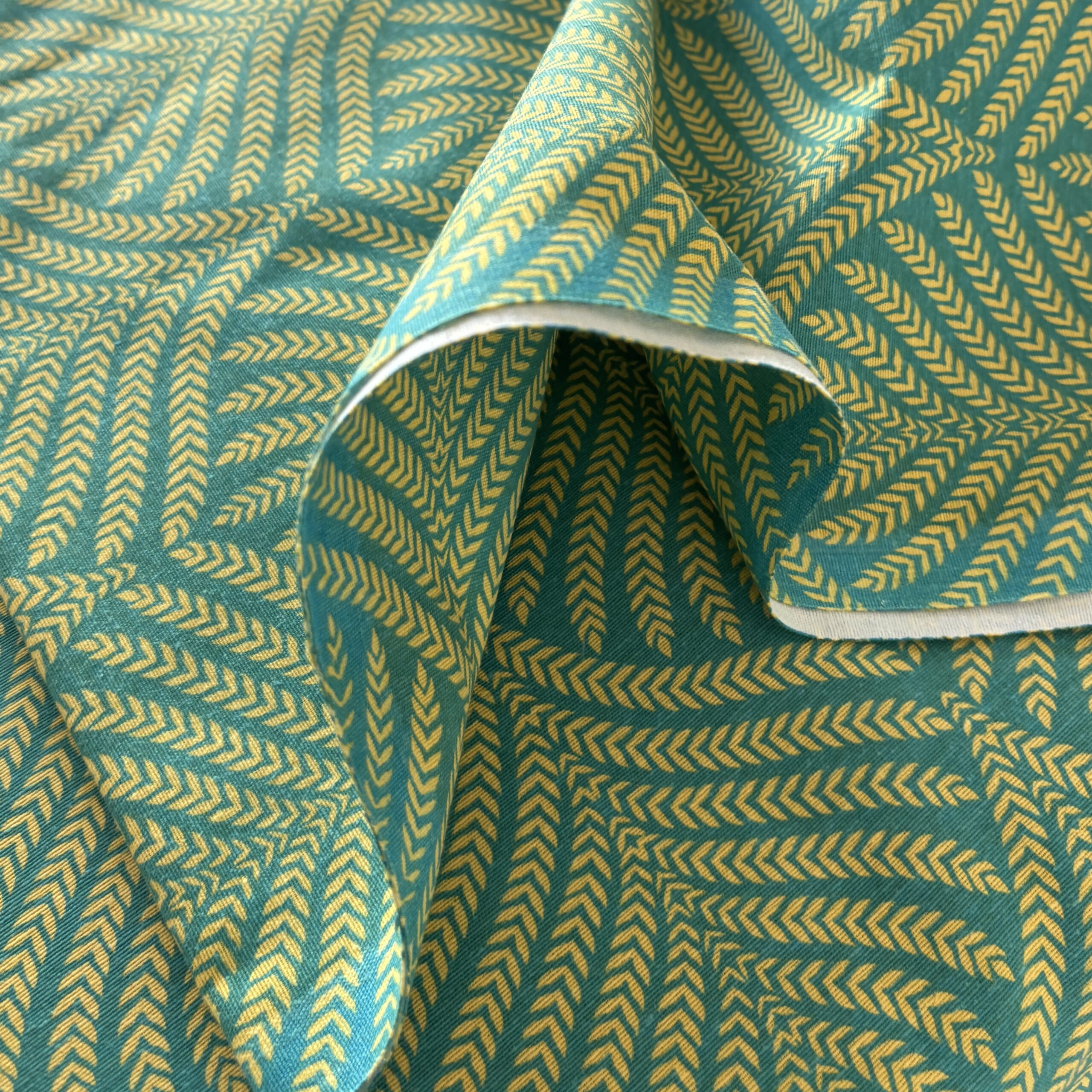 • Couleurs/Motifs : Motifs Art déco/ épis jaune sur fond bleu canard