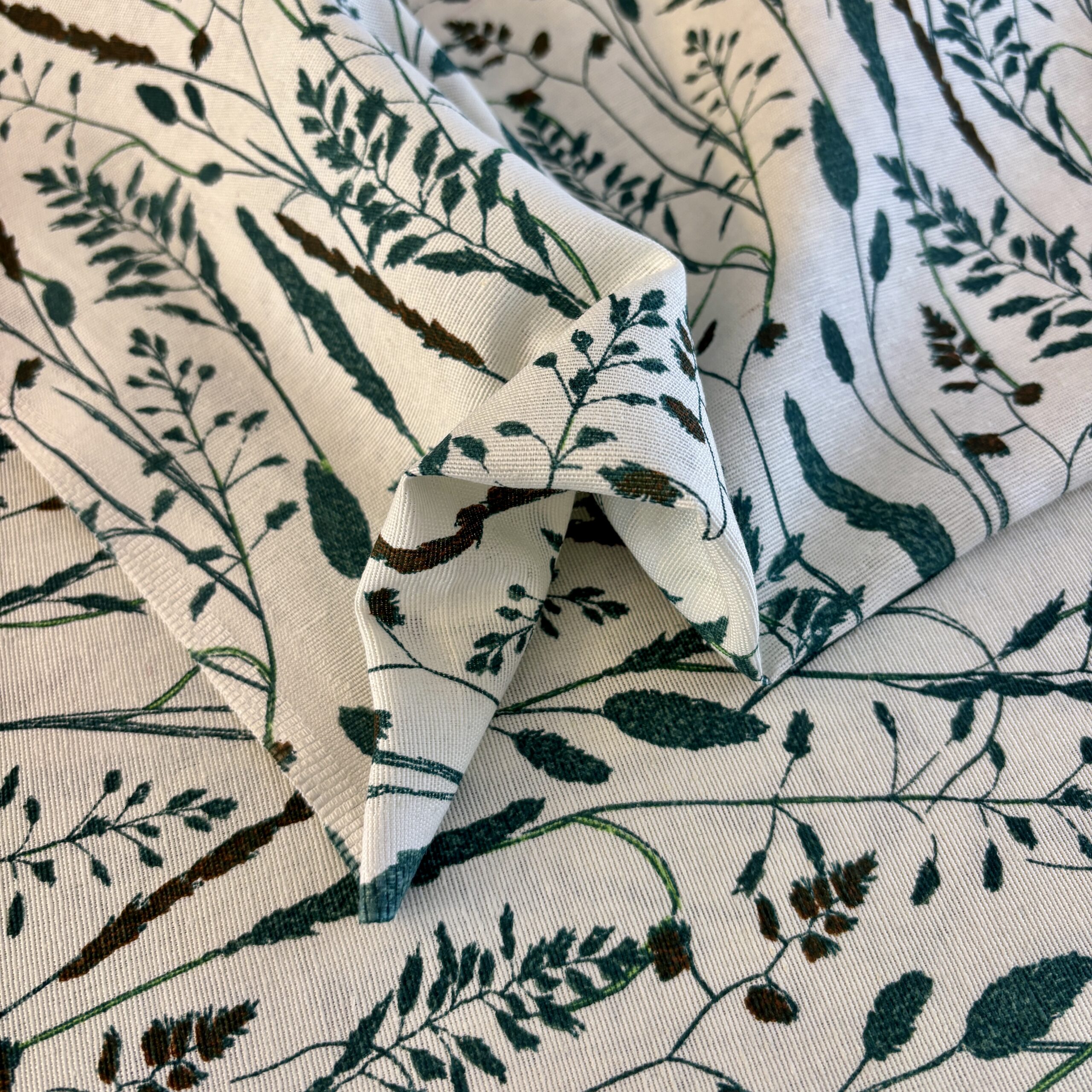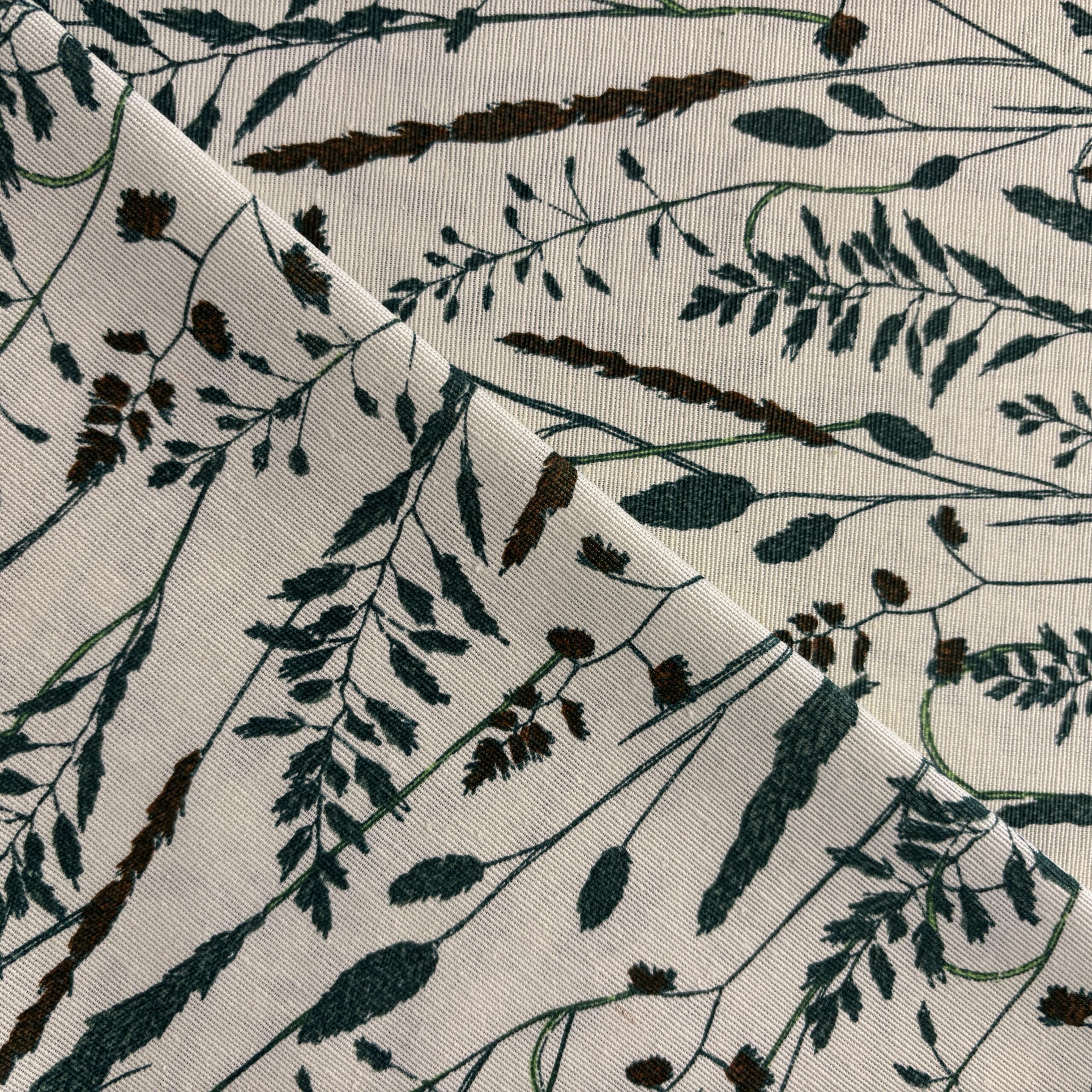 - Couleurs/Motifs : Motifs feuillage champêtre sur fond blanc