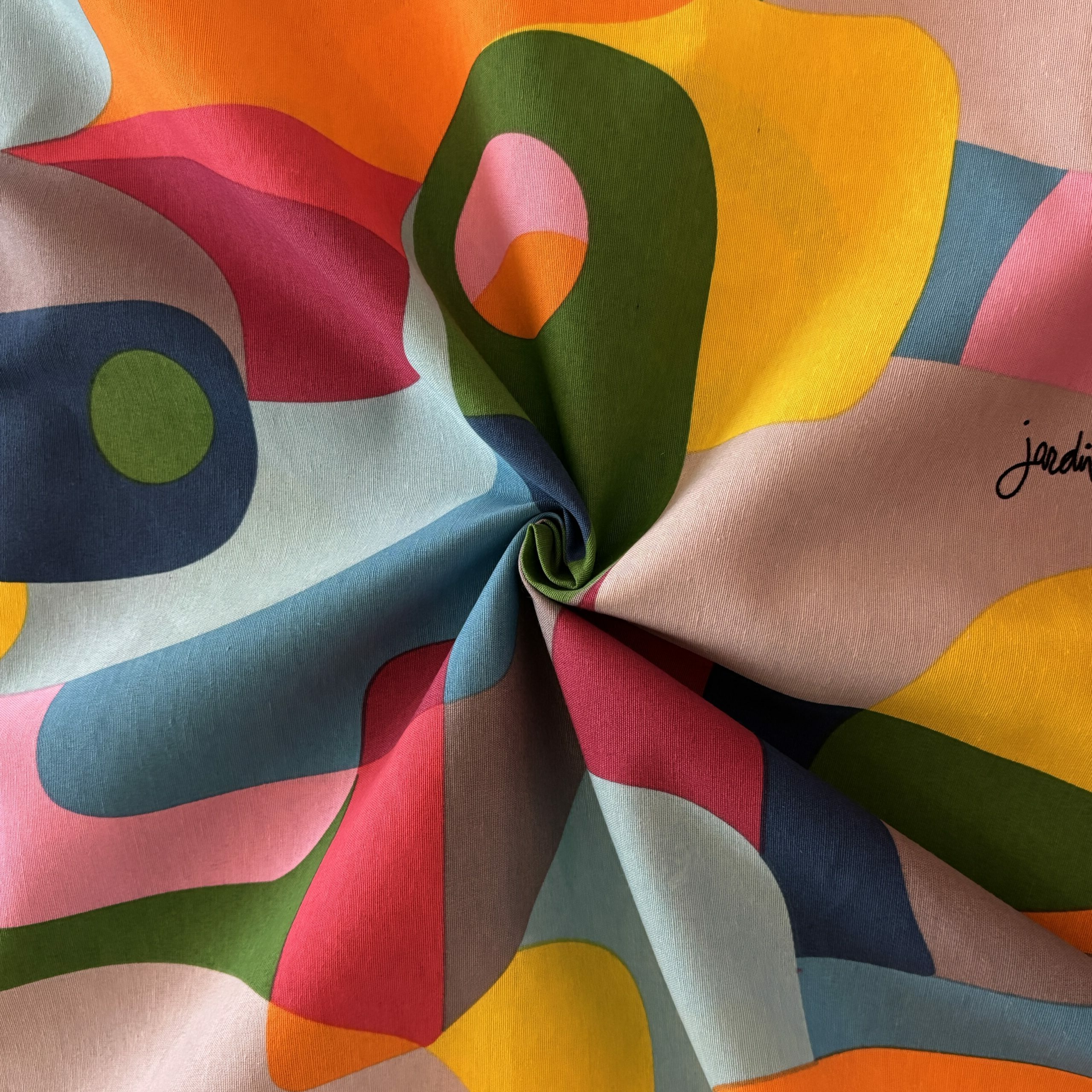 Coupon Polycoton formes abstraites multicolores 1,40x3m
