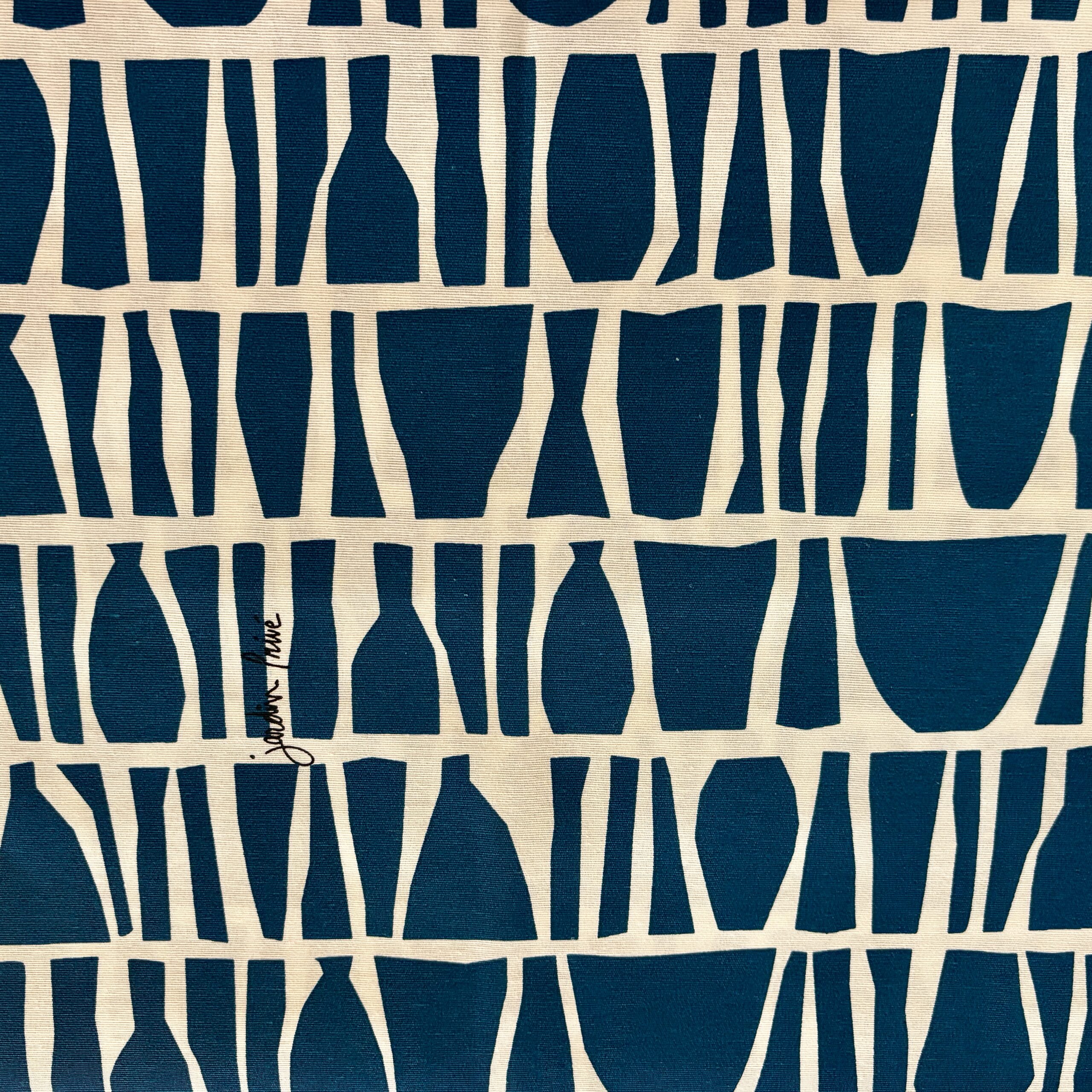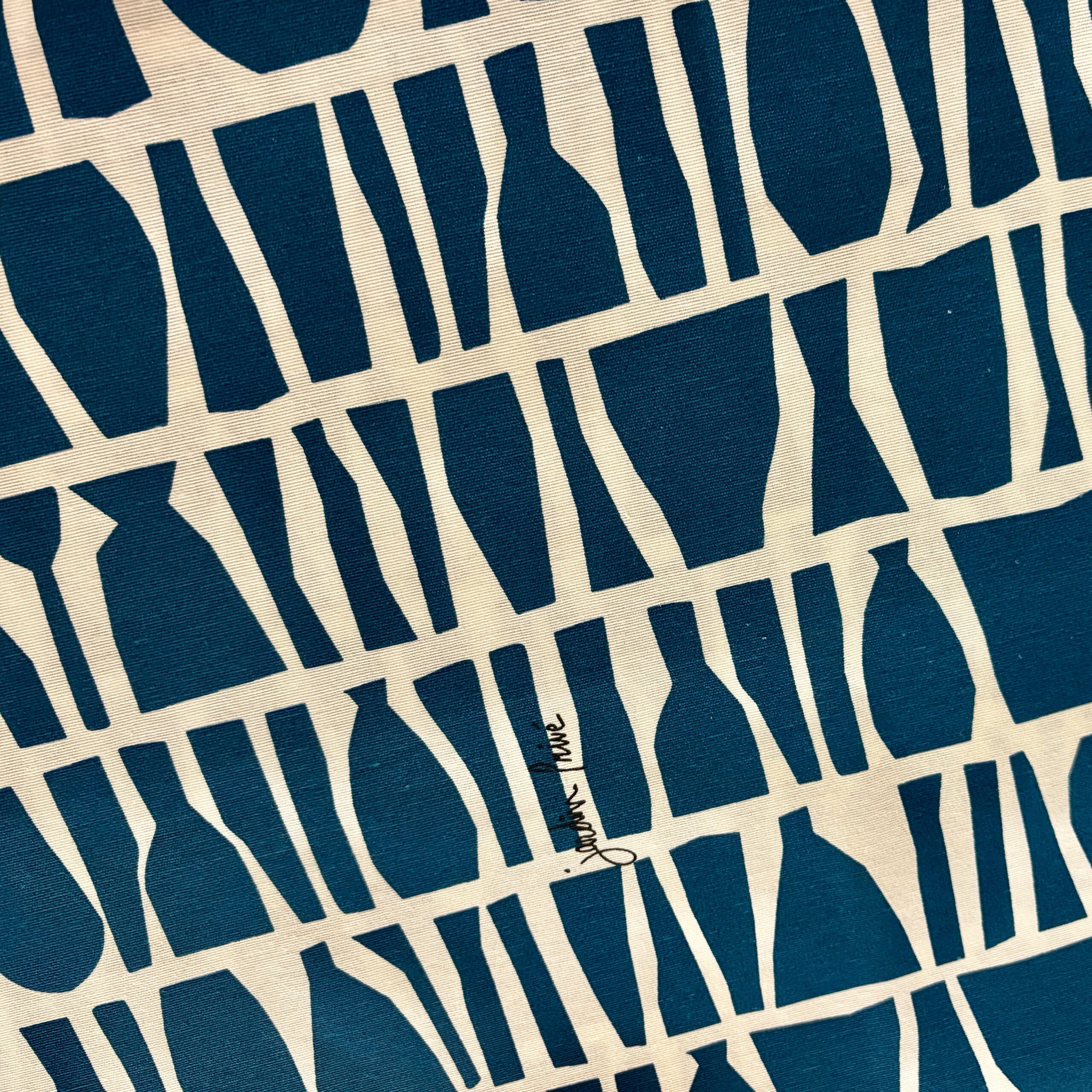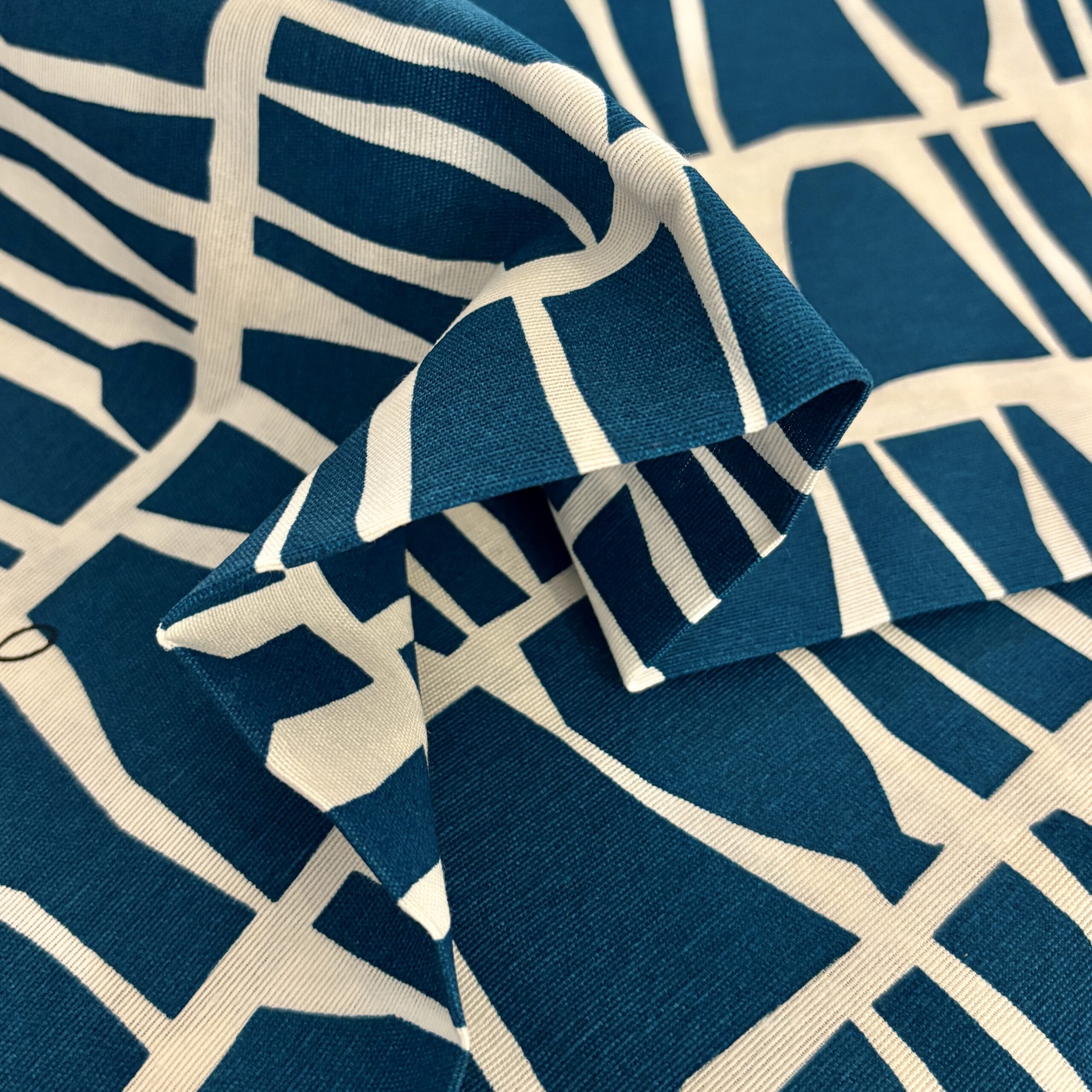 - Couleurs/Motifs : Motifs graphiques bleu pétrole sur fond blanc