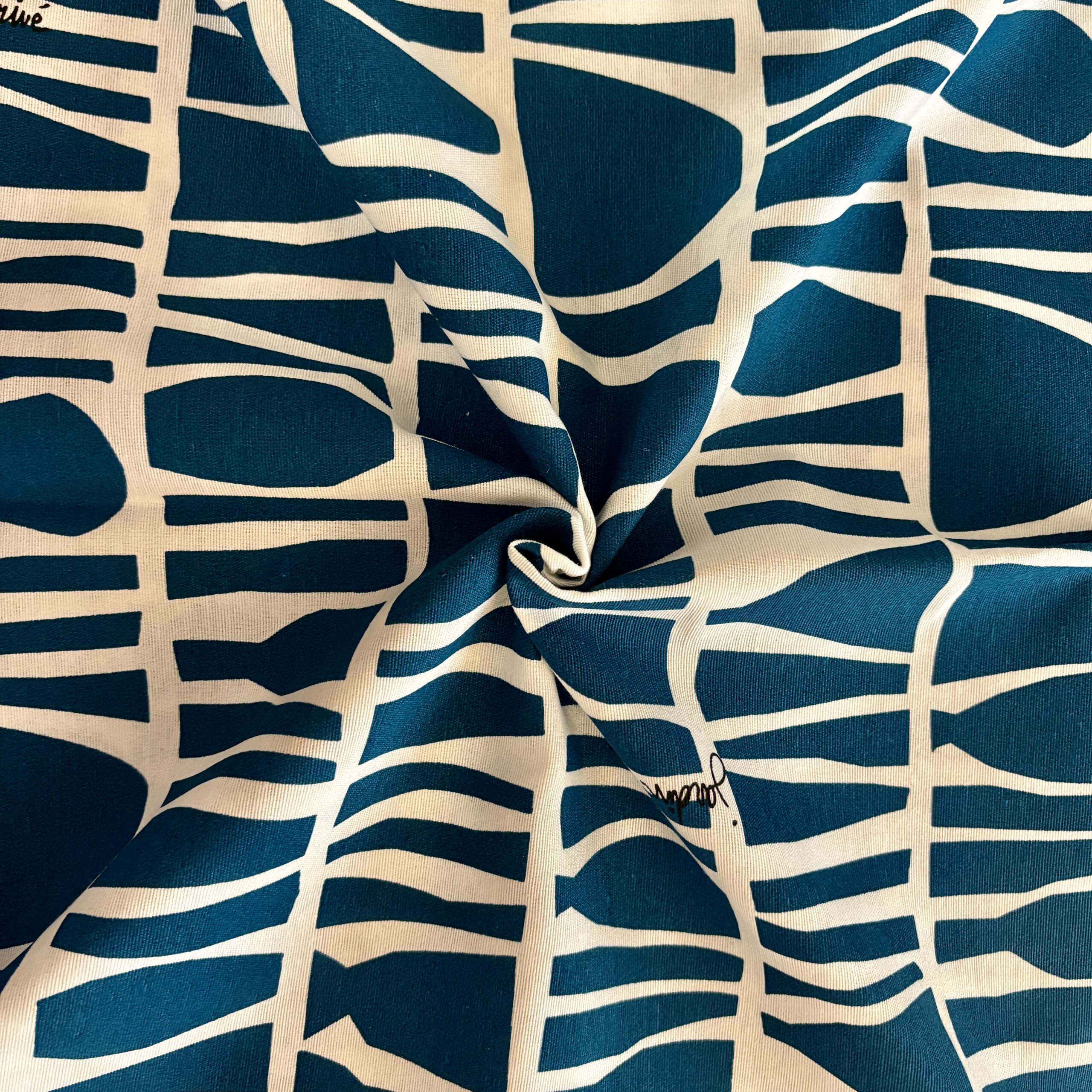 Coupon Polycoton motifs bleu pétrole 1,40x3m