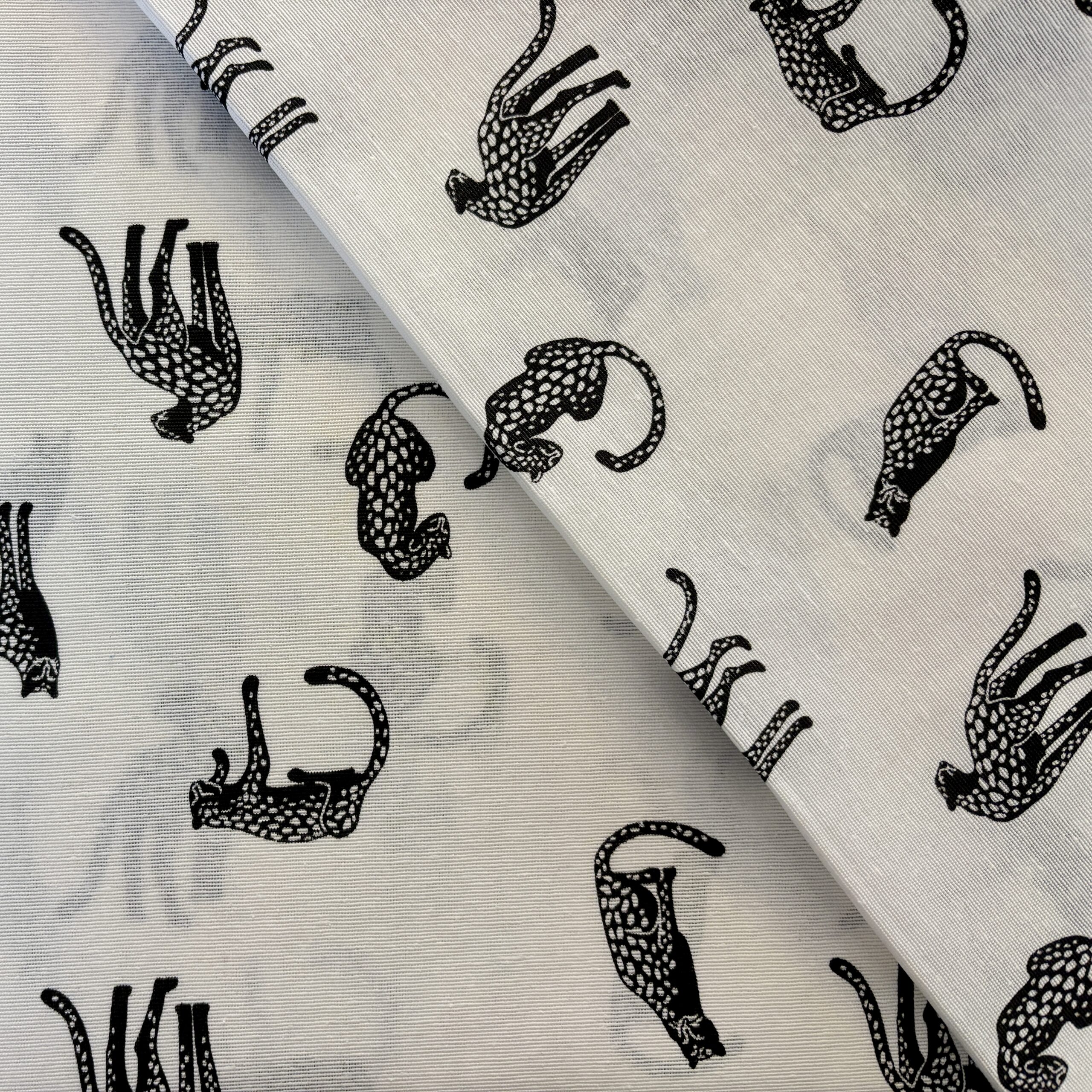 - Couleurs/Motifs : Motifs léopards noirs sur fond blanc