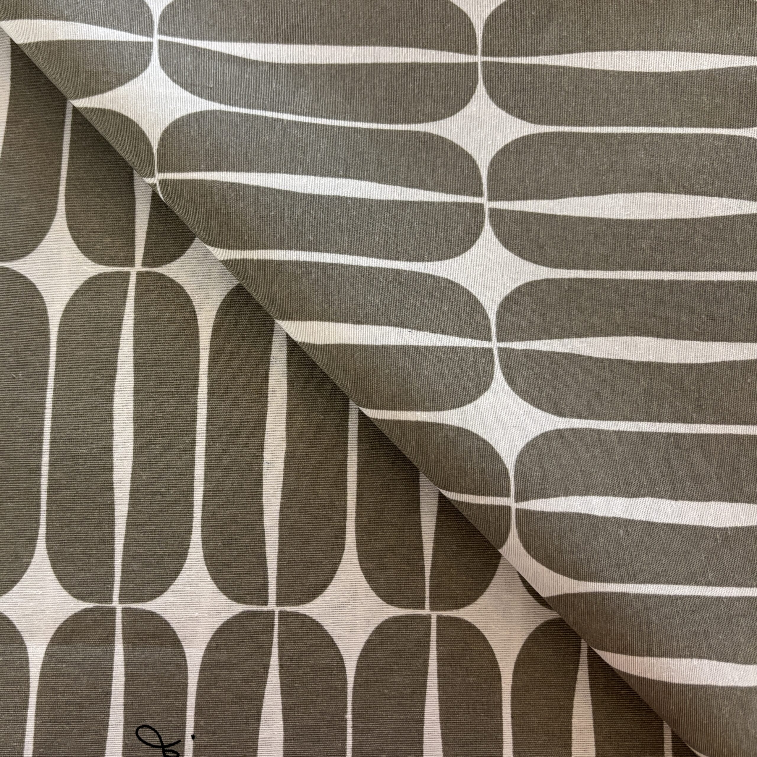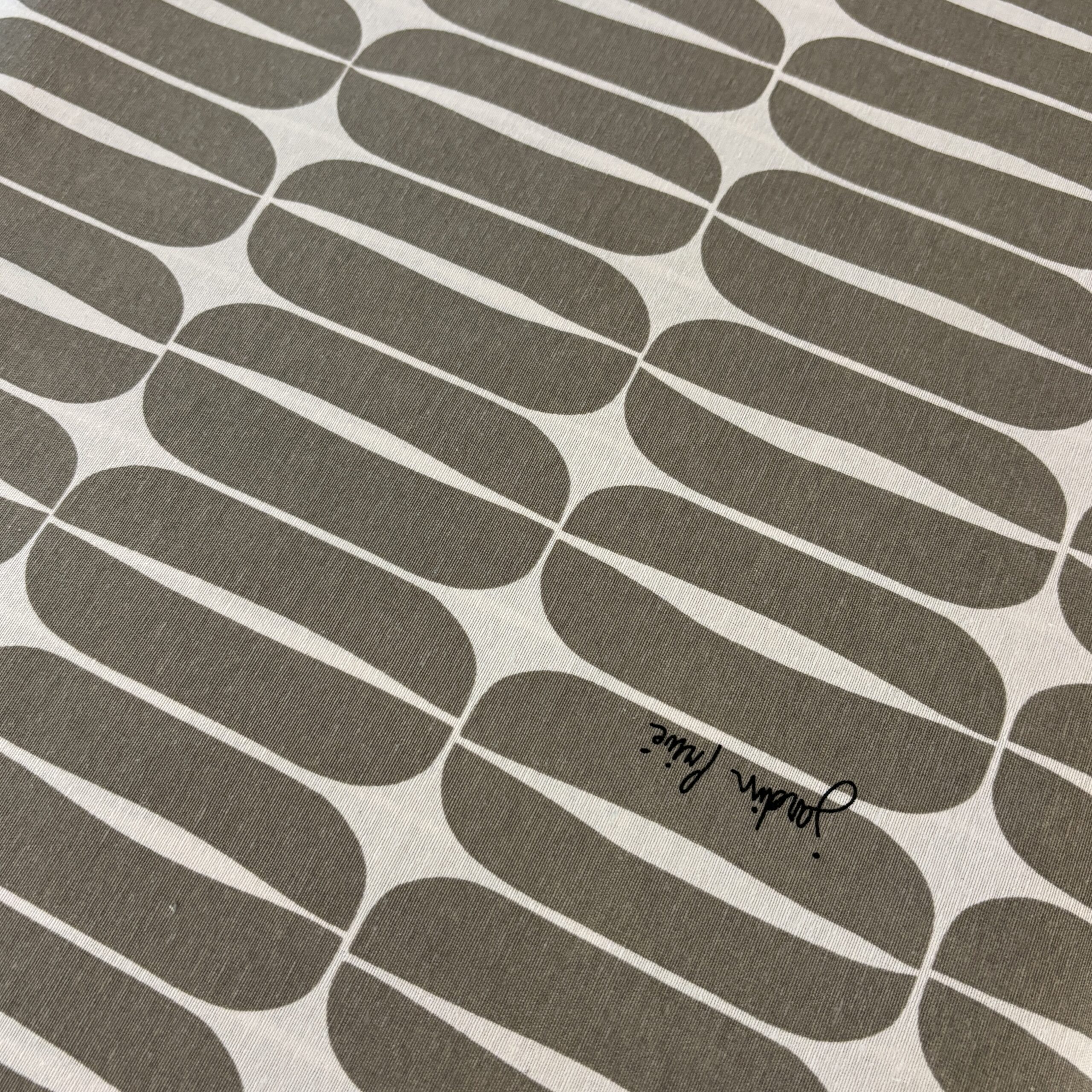 - Couleurs/Motifs : Motifs années 70 gris sur fond blanc