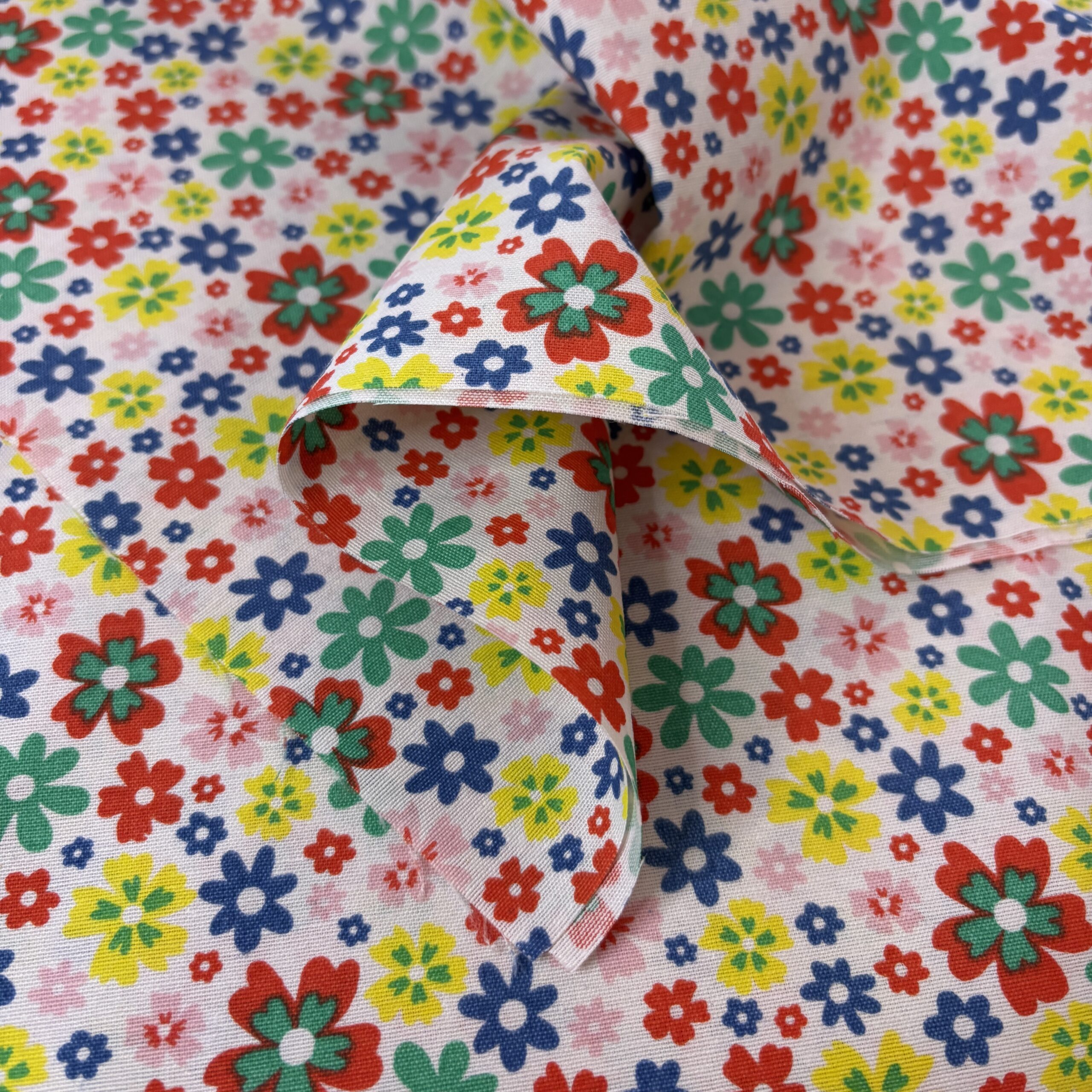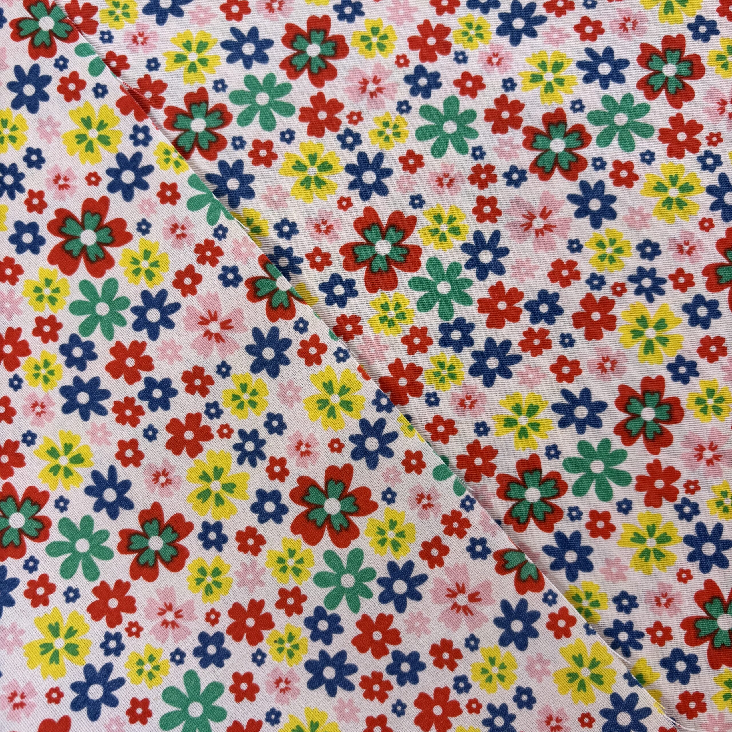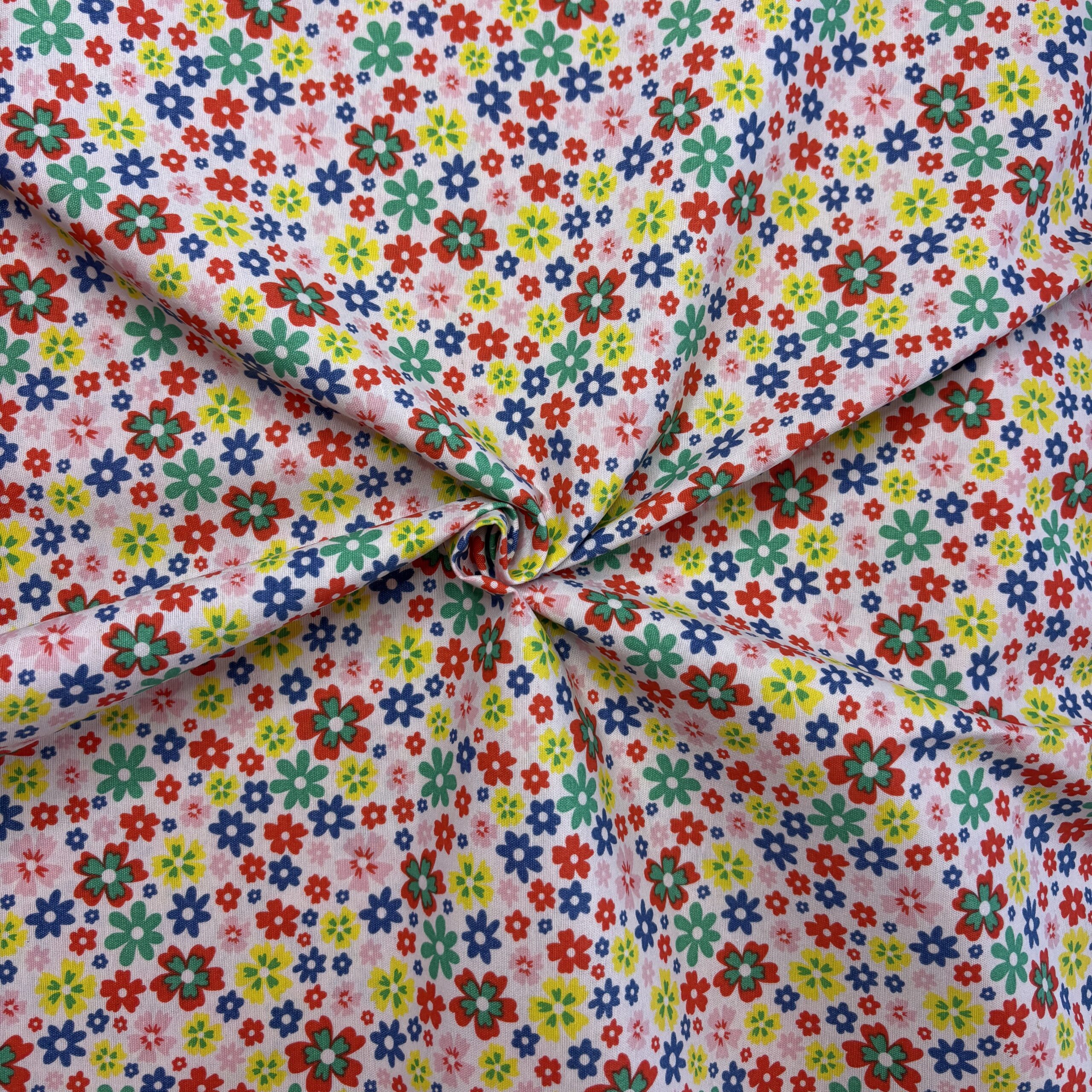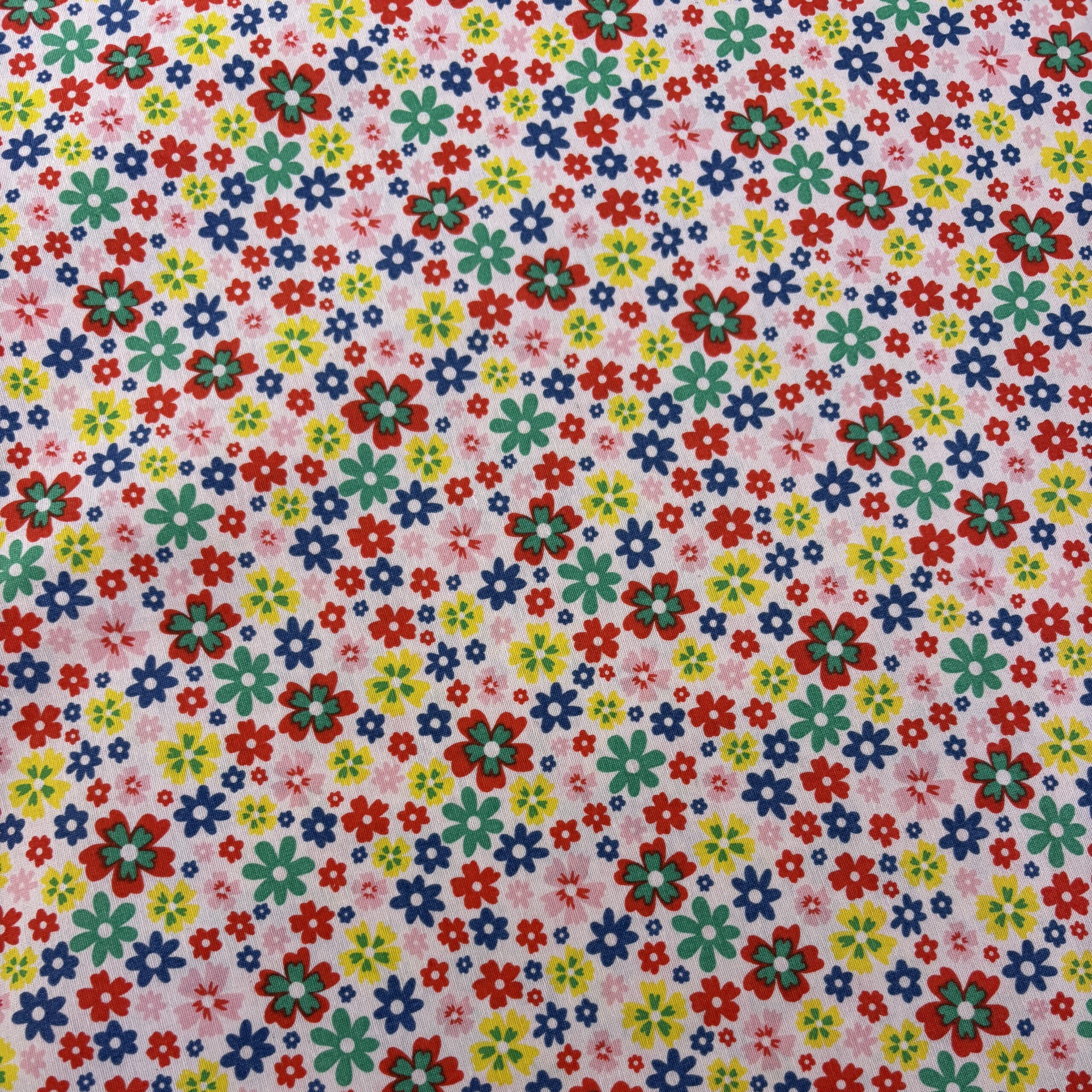 - Couleurs/Motifs : Motifs petites fleurs colorées sur fond blanc
