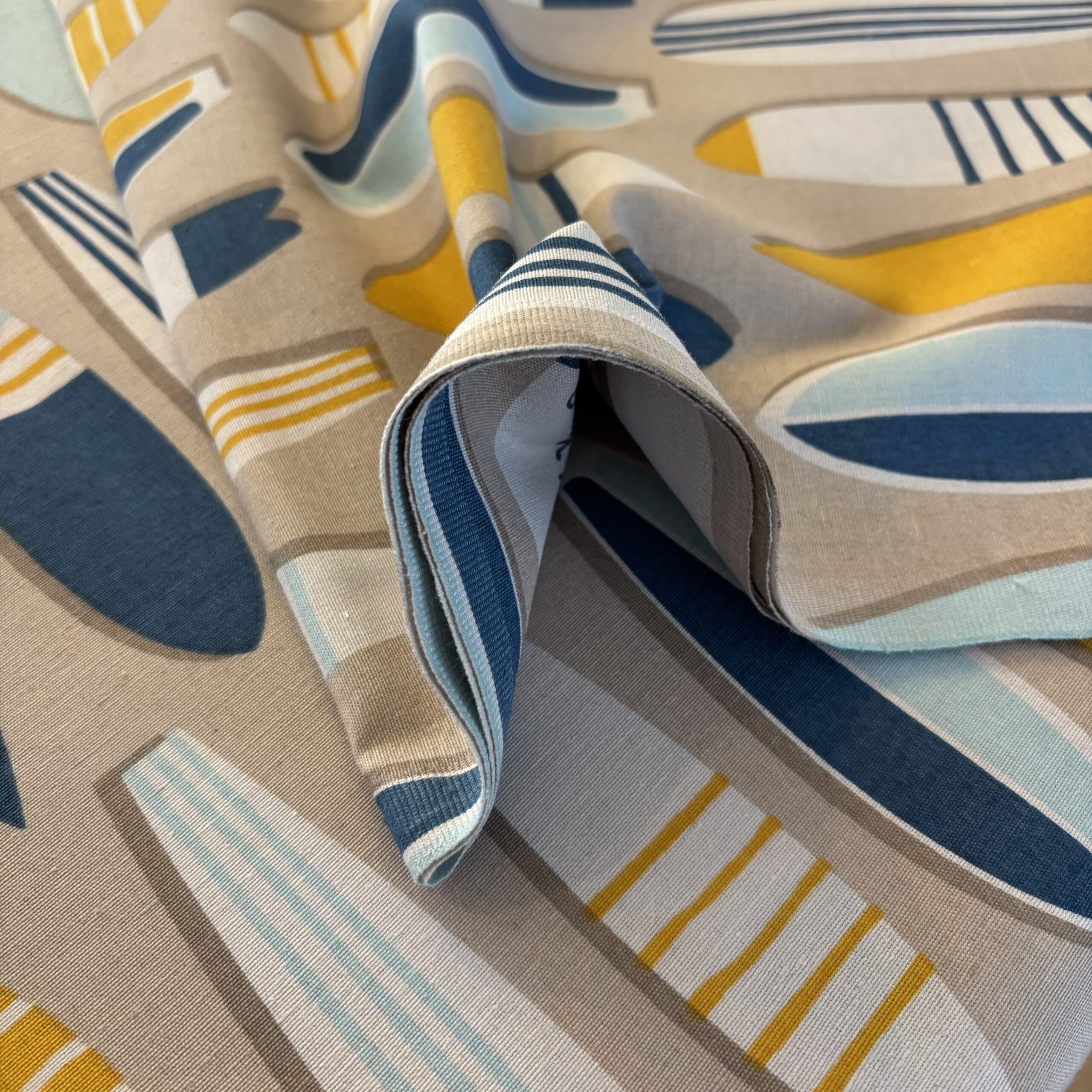 Issu de bouteilles d’eau recyclées, ce tissu traité déperlant est idéal pour une jolie nappe ou pour égayer vos salons de jardins !