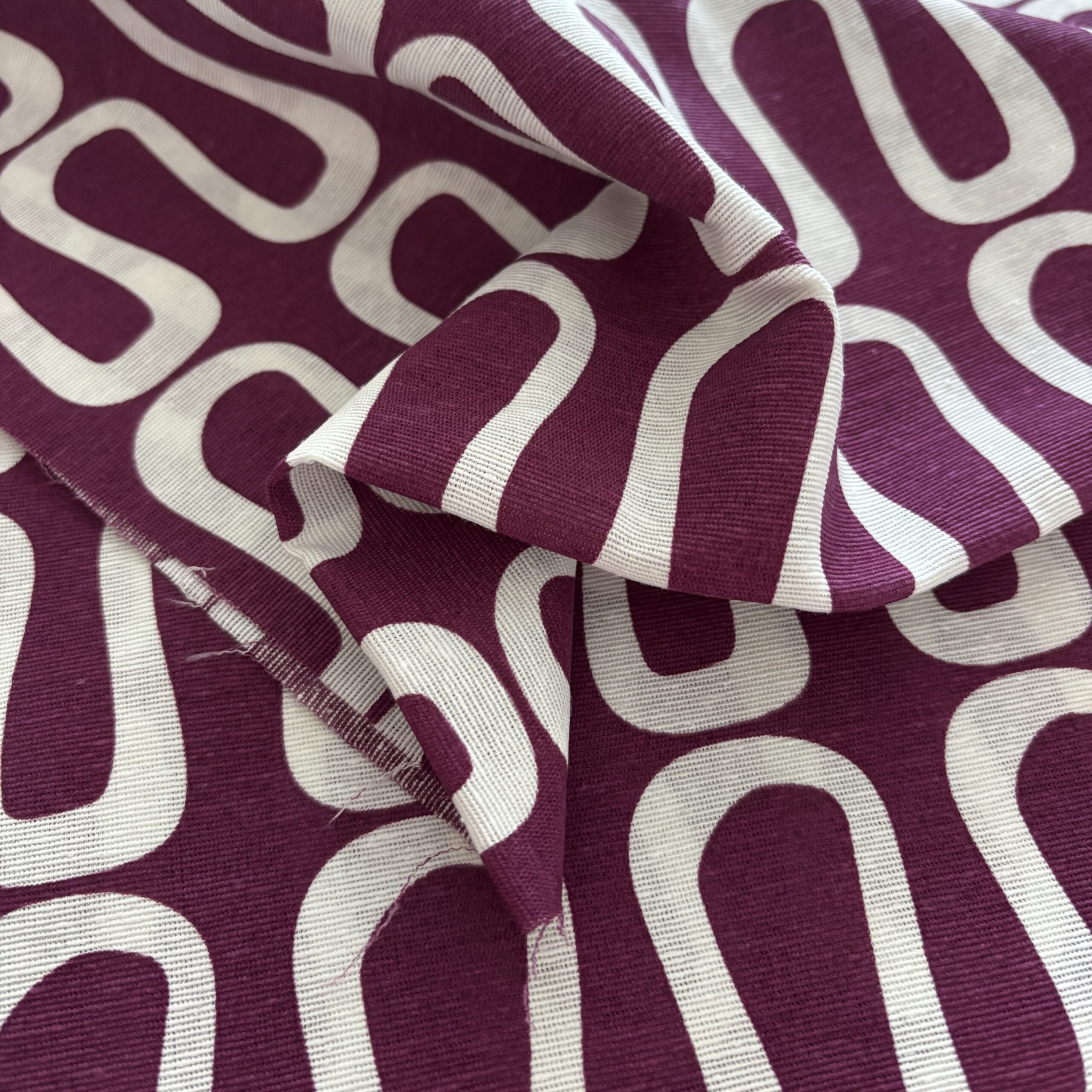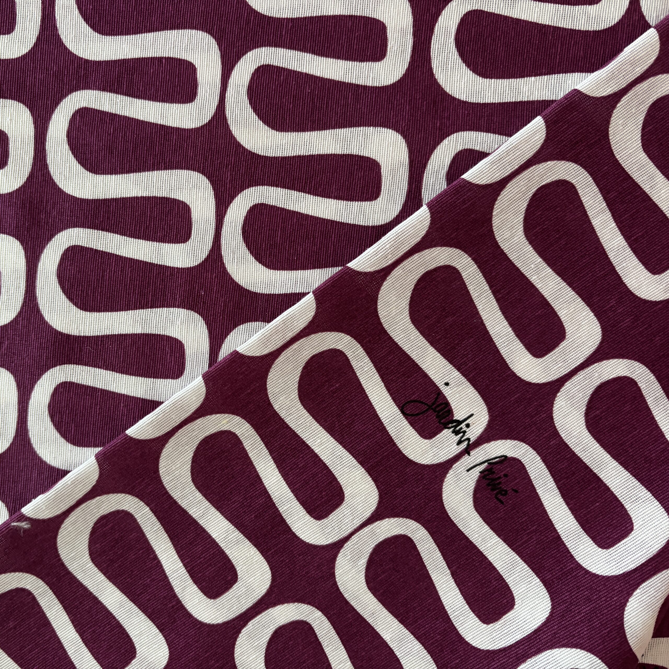 Coupon Polycoton Vagues blanches/prune 1,40x3m